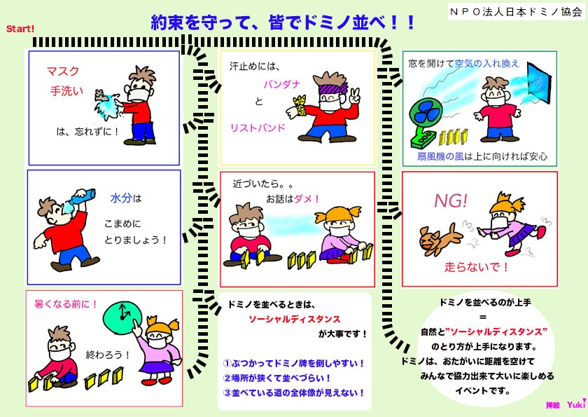 感染を防ぐ最も効果的な対策は、マスク・換気、ドミノ倒しの前後の手洗い・手指の消毒と、使用されたドミノ牌の一定時間の隔離だと考えています。